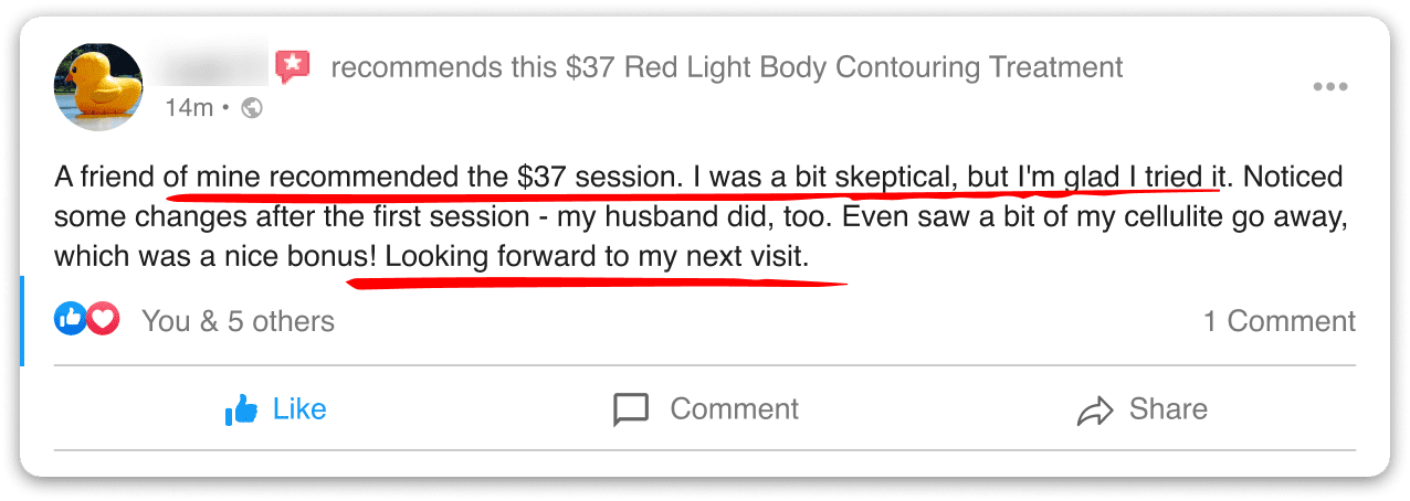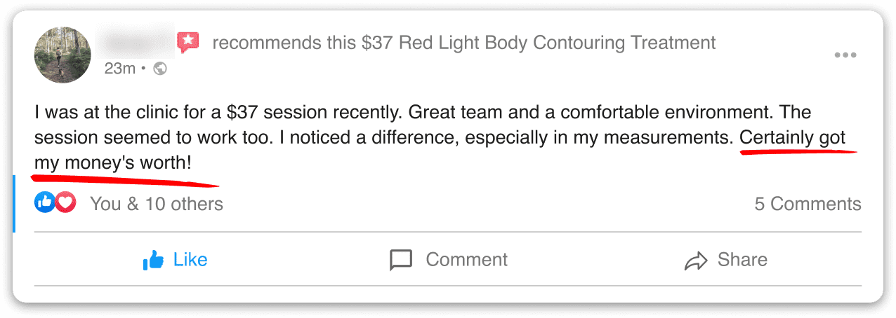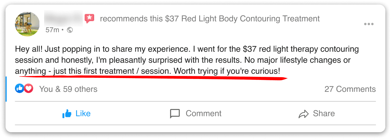 Our patients have been overwhelmingly positive about the Red Light Body Contouring Treatment from this $37 promotion.
